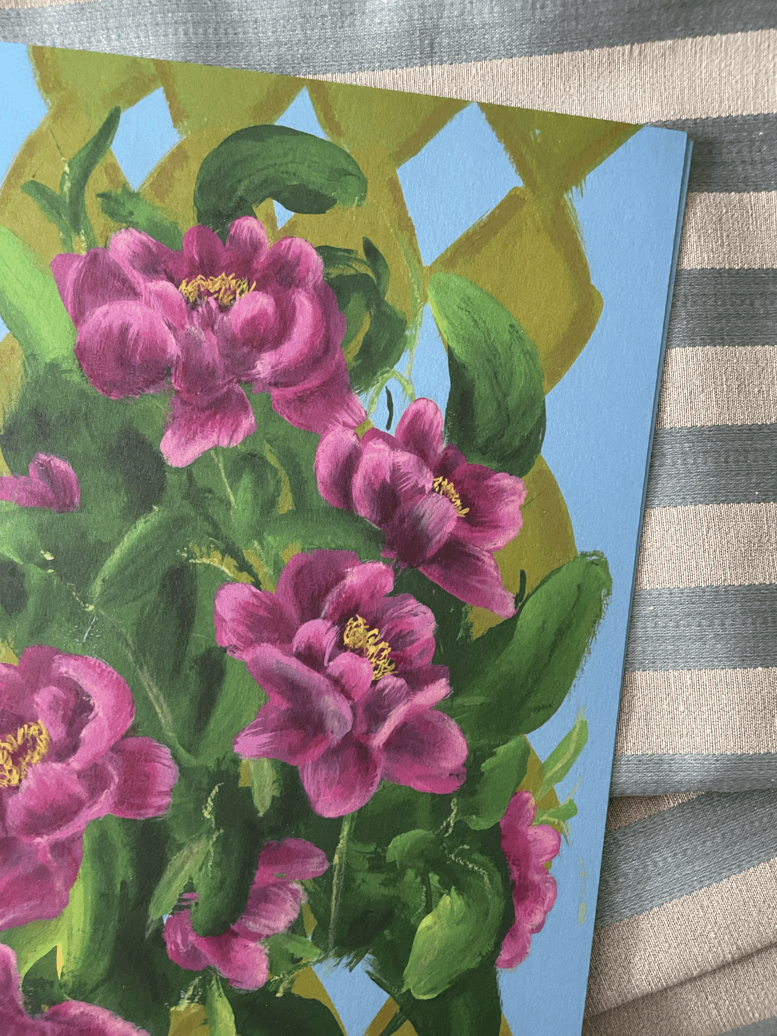 Originally painted using gouache acrylic, pencil, soft pastel and oil stick.